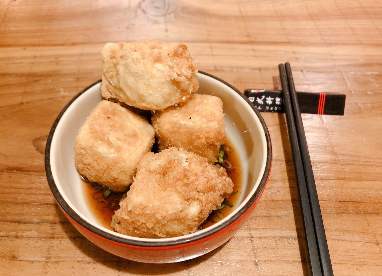 炸豆腐口感蠻妙的,裡面的豆腐質地比我想像中硬,不是滑嫩的那種~
