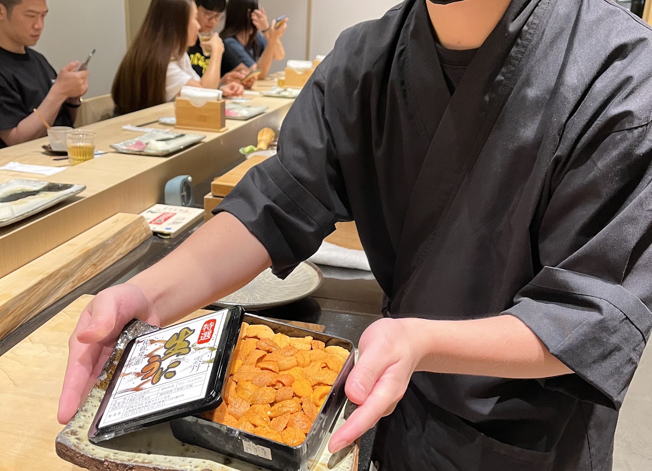 一進到店裡就能感受滿滿的日式氛圍,全部的座位就是吧台座,師傅就會站在客人的面前替客人捏一貫一貫的壽司。也能近距離看到師傅的手藝。彷彿在看一場精彩的美食魔術表演。