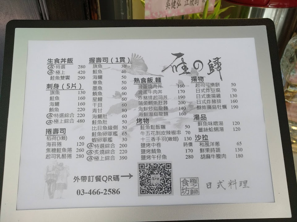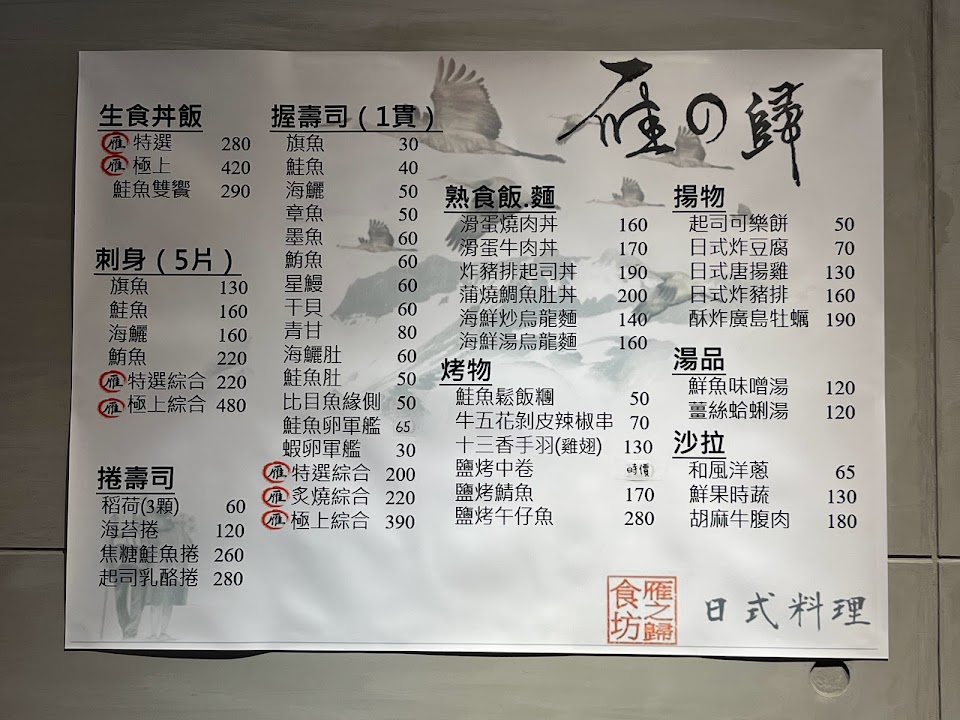2024最新在地推薦餐廳的菜單_雁之歸日式料理( 不定時公休日請至FB.IG查看唷^_^ )的菜單、圖片