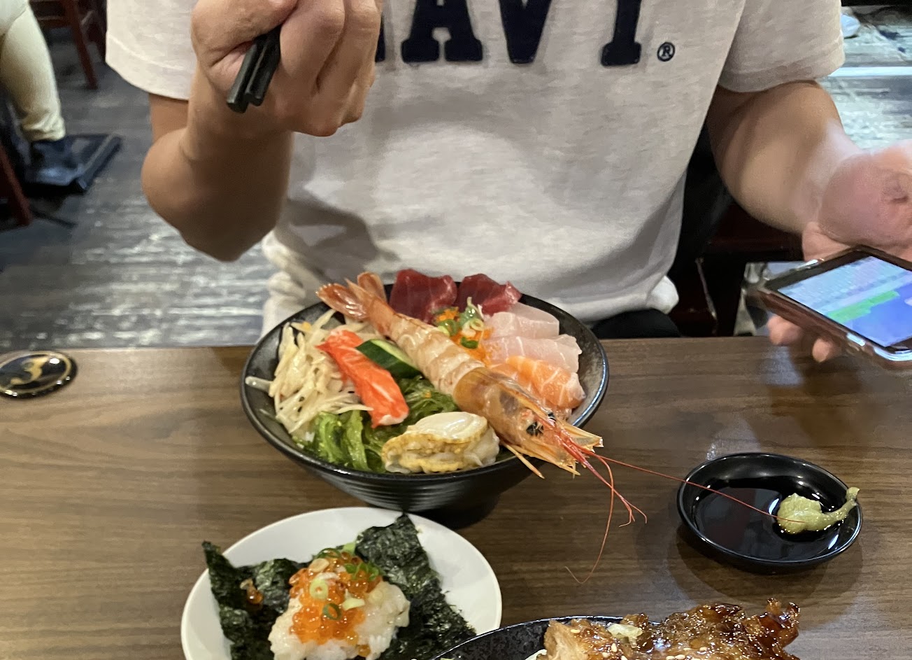 平價消費新鮮的美味,生魚片有新鮮,天使紅蝦Q彈好吃,滿滿一碗海鮮丼覺得好好吃!一級棒!