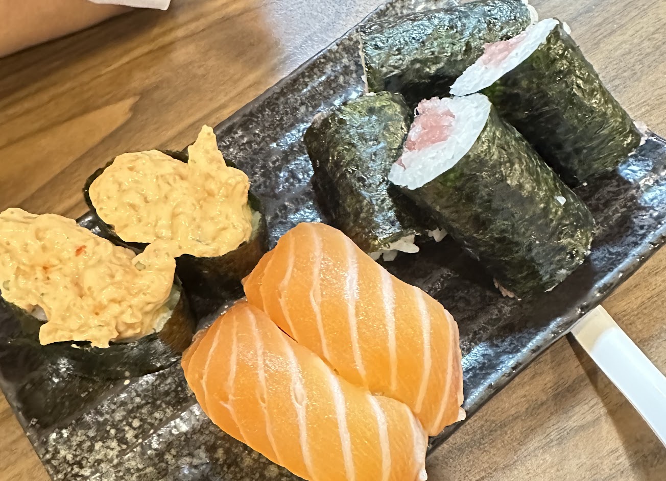 午魚真的好吃,焦糖鮭魚入口即化,生魚片新鮮,可惜醋飯不夠味