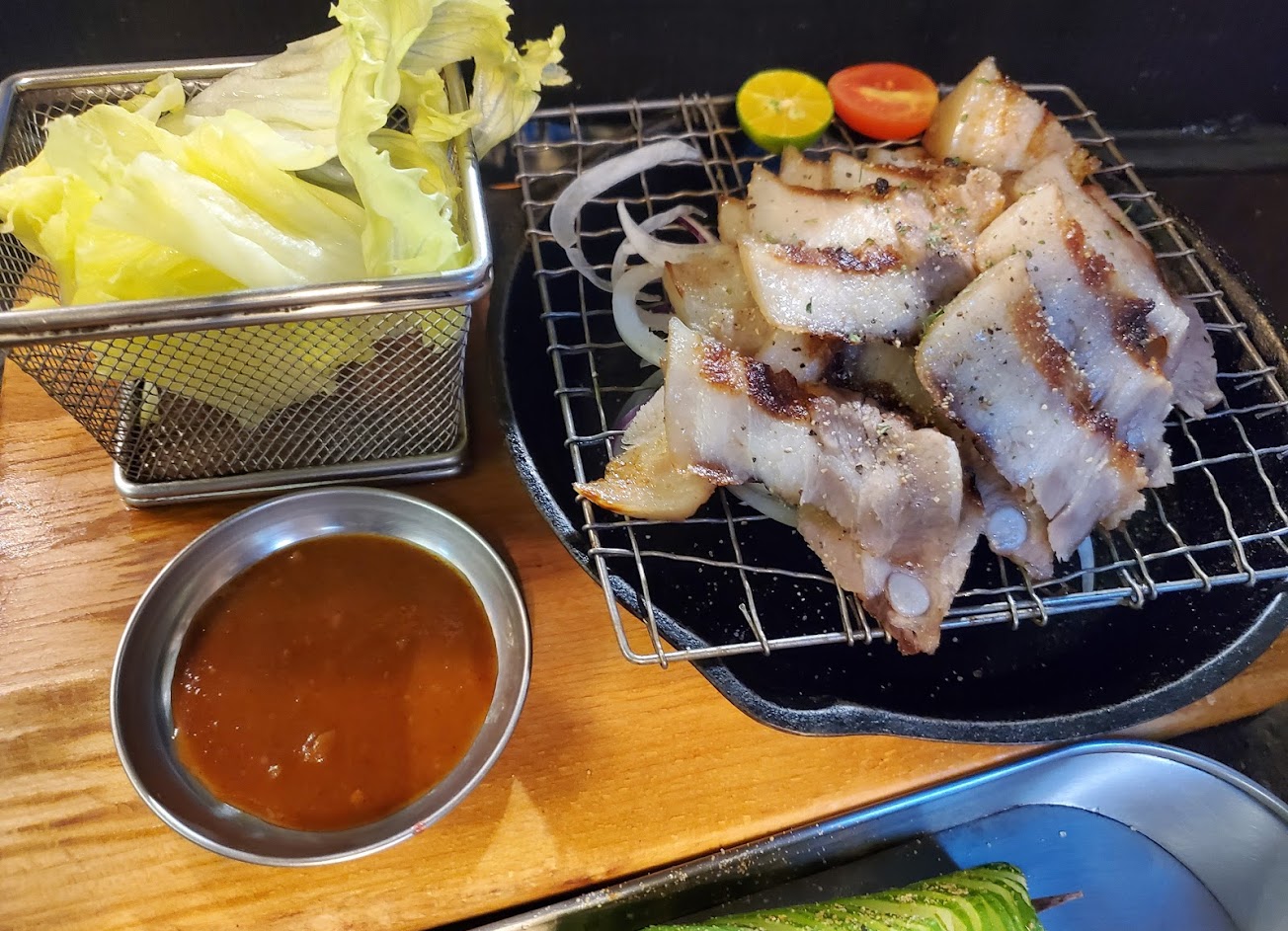 板燒五花肉:因為人氣排第二名才點的 但個人覺得普通 有點像是加黑胡椒的三層肉…