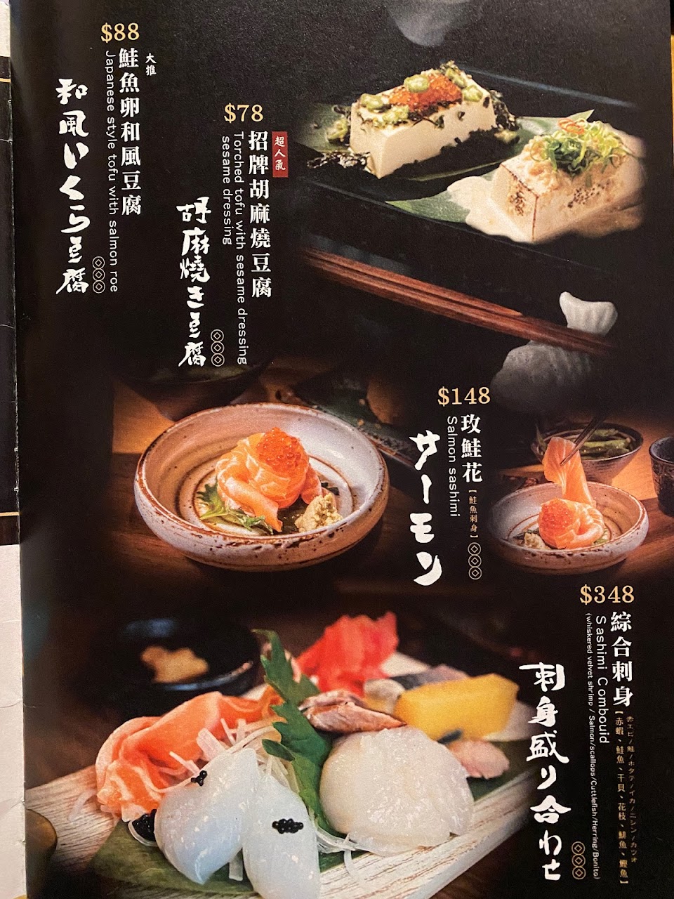 胡麻豆腐, 鮮蝦海鮮起司蒸蛋, 烤明太子 鹽烤 烤香料雞肉串