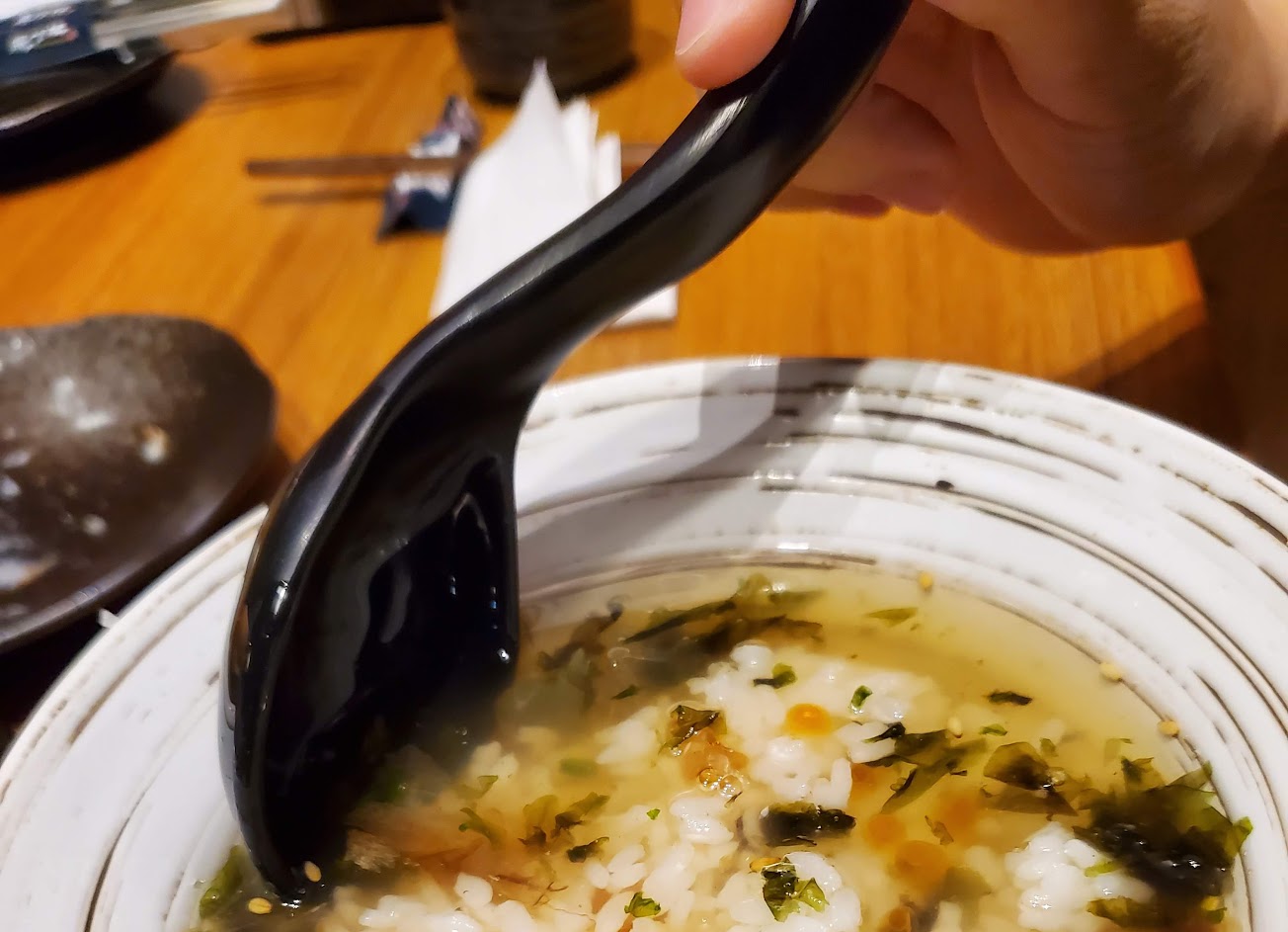 2.味噌湯送上來時,服務人員說會再補上湯匙,癡癡等了約莫十分鐘,依然沒看到湯匙,甚至已經開始在思考其實只有我們是用湯匙喝湯,後來好不容易鼓起勇氣按下服務鈴,並告知需要湯匙及茶,好,過了許久,湯匙終於來了,但味噌湯也冷了,超鹹,依然沒看到茶?