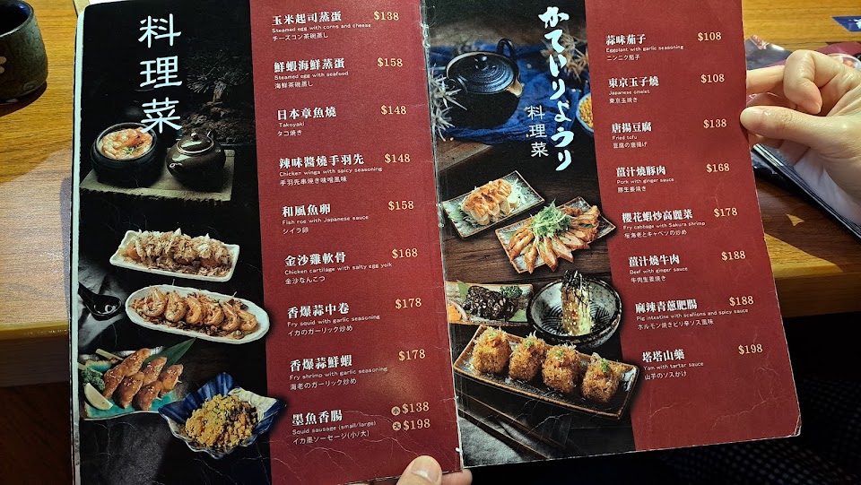 菜單上蠻多酒類可選擇,但帶小孩用餐就沒點,這次點了蠻多餐點,有兒童餐、廣島炸牡蠣、唐揚雞丁、明太子雞肉串、起司牛魔丸、孜然羊肉串、醬烤中卷、東京玉子燒、烤嫩雞散壽司、烤海苔飯糰盛合、炒烏龍麵、海老丼飯、牛魯肉飯,整體口味較偏大人口味,適合小酌一杯會更美味。