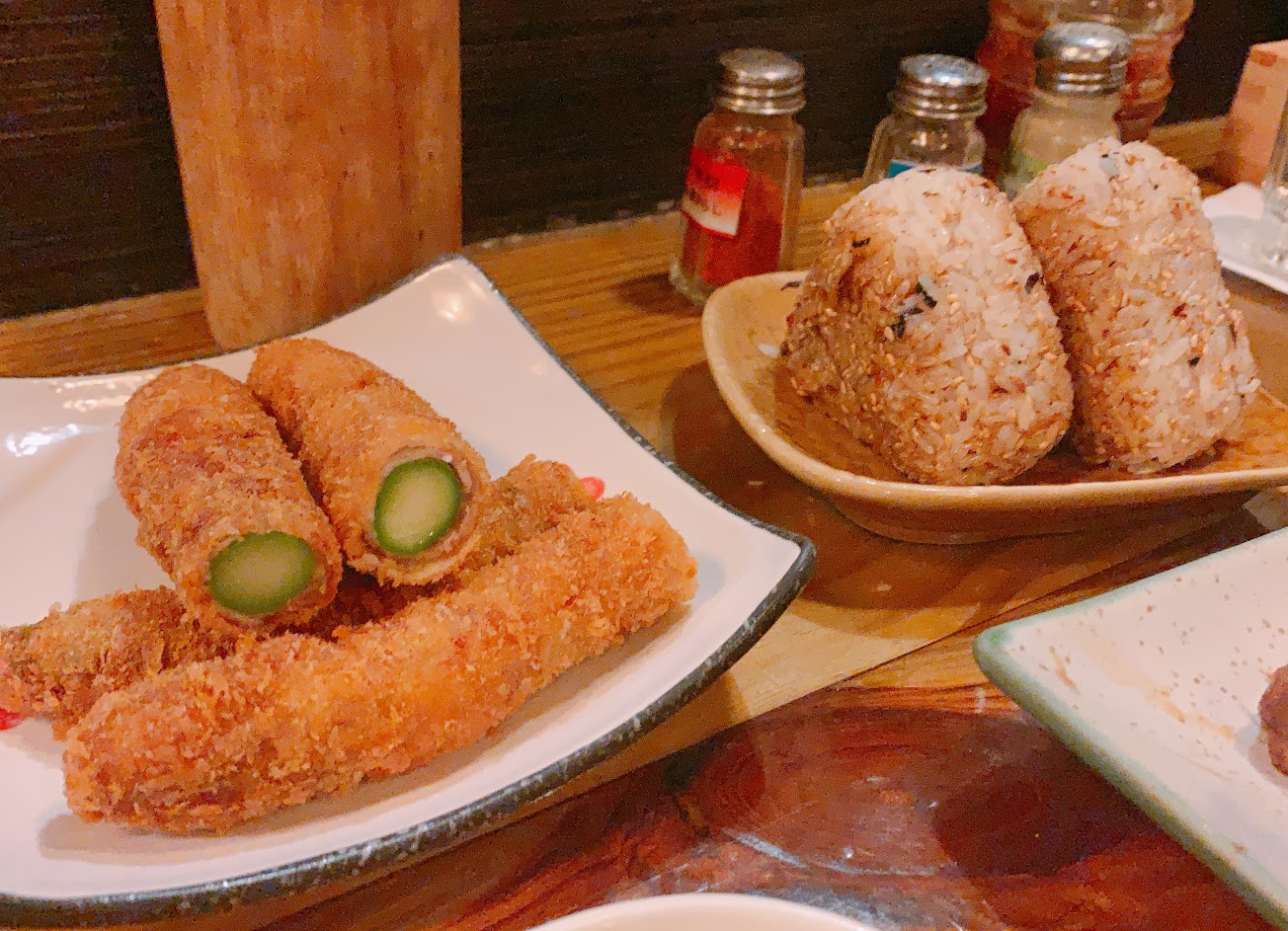 這是一家充滿日式風格的燒烤店,很多日本人光顧。這餐廳各式的的豬肉卷都特別好吃,尤其是葡萄豬肉卷,不過雞肉類的串就還好而已。沒有覺得很特別。