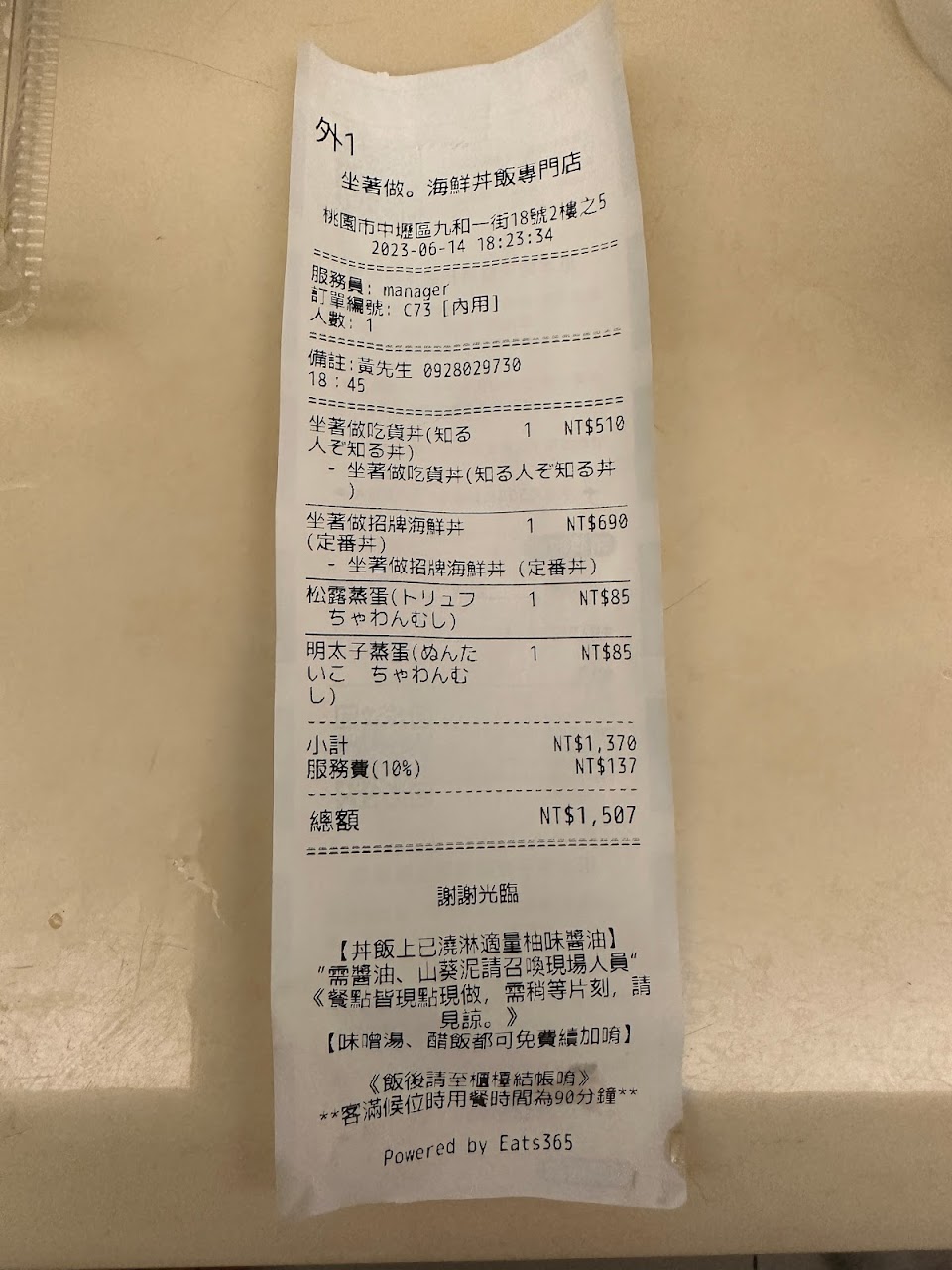 松露蒸蛋料很多、海鮮丼新鮮好吃,鮑魚Q彈入味,店員非常貼心,會一直詢問是否要續湯~
