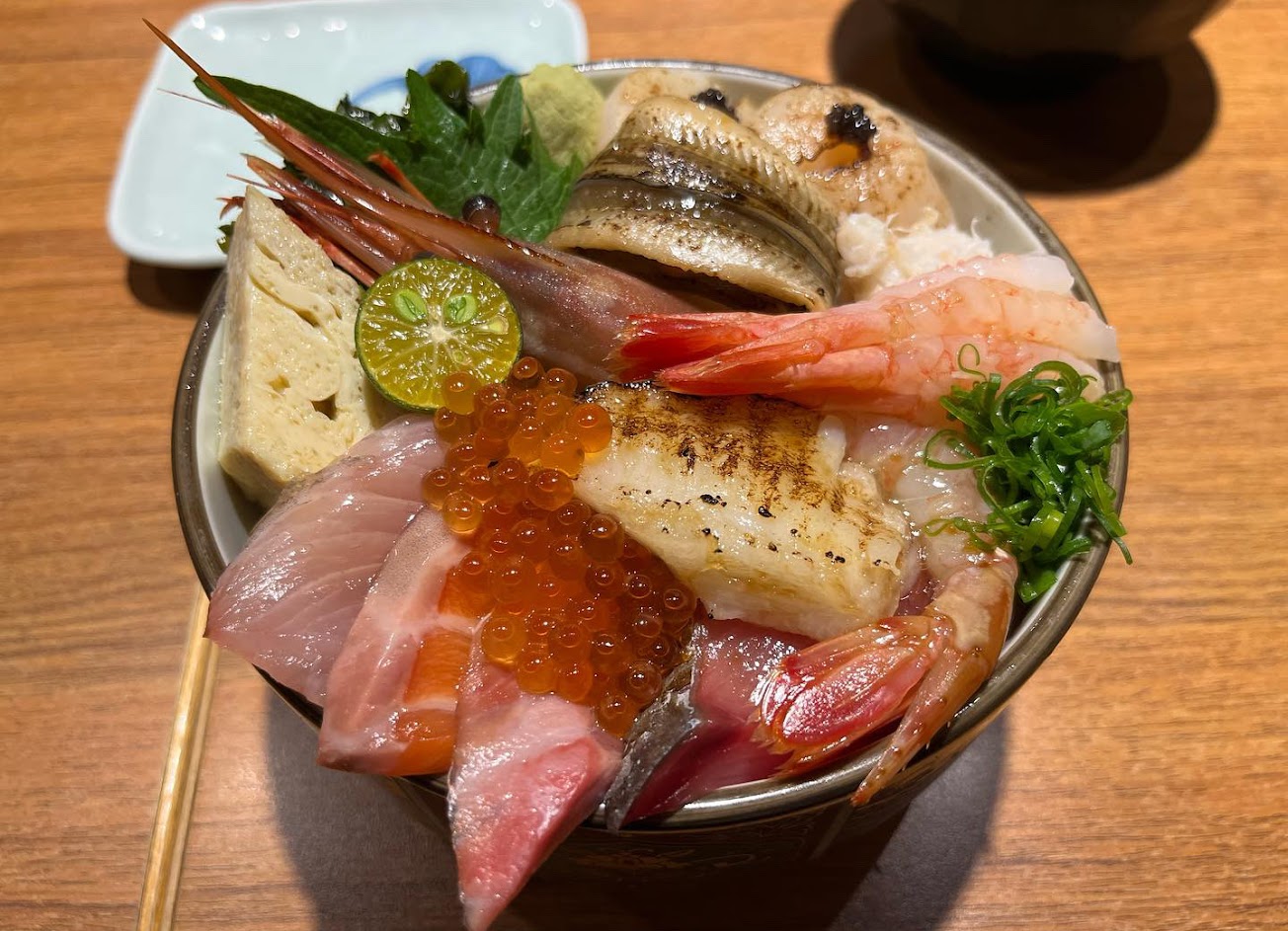 海膽鮮甜,魚生也都新鮮紮實,比目魚鰭邊肉很好吃,整體上CP值蠻高尤其醋飯和湯還可以加。 蒸蛋很細嫩,喜歡。下次試試看角蝦丼,也很希望迷你小捲限定丼可以復刻一下。