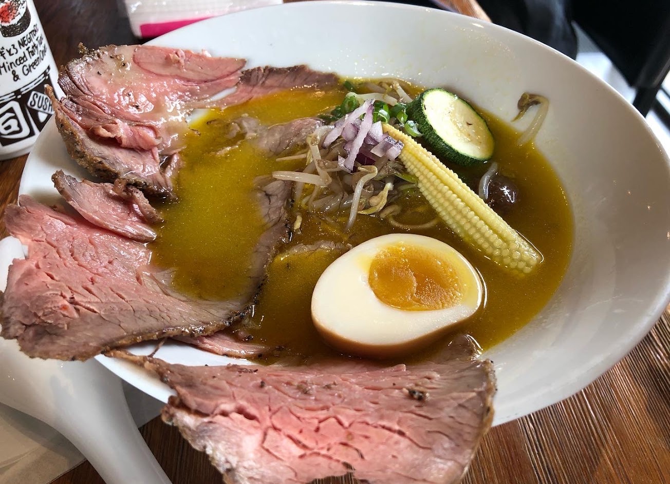 拉麵份量足夠牛肉極嫩,不同於一般的拉麵比較像創意料理