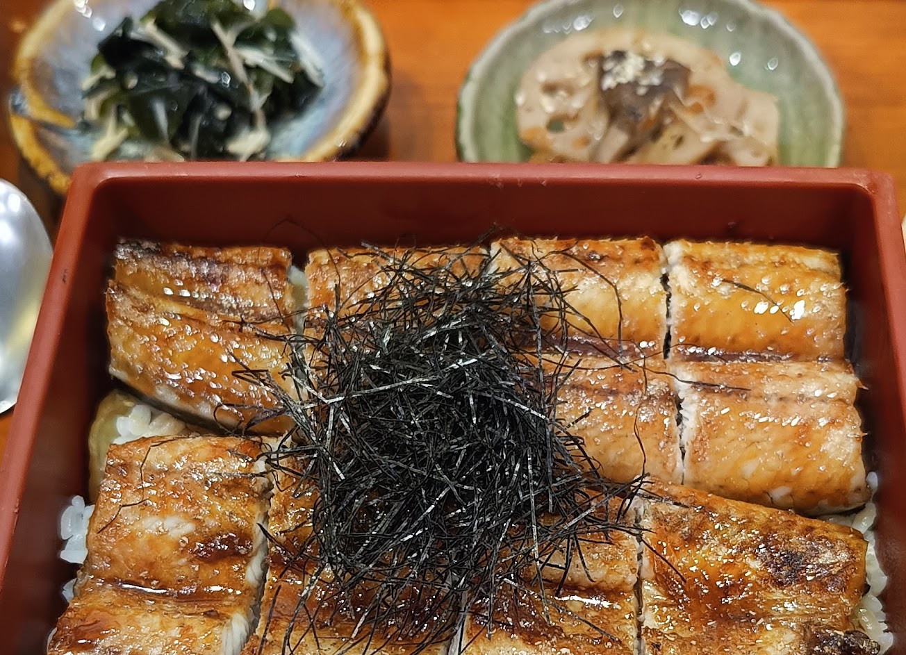 鰻魚飯的鰻魚吃得出來是好大一條,這樣的肉質是其他家沒有的,新鮮厚實。但可惜是火候不足,所以魚皮會太厚,太韌,口感稍差! 建議可以直火現烤( 本人是沒進廚房看,這應該是用烤箱烤的),也建議可以烤白鰻,增加選擇。