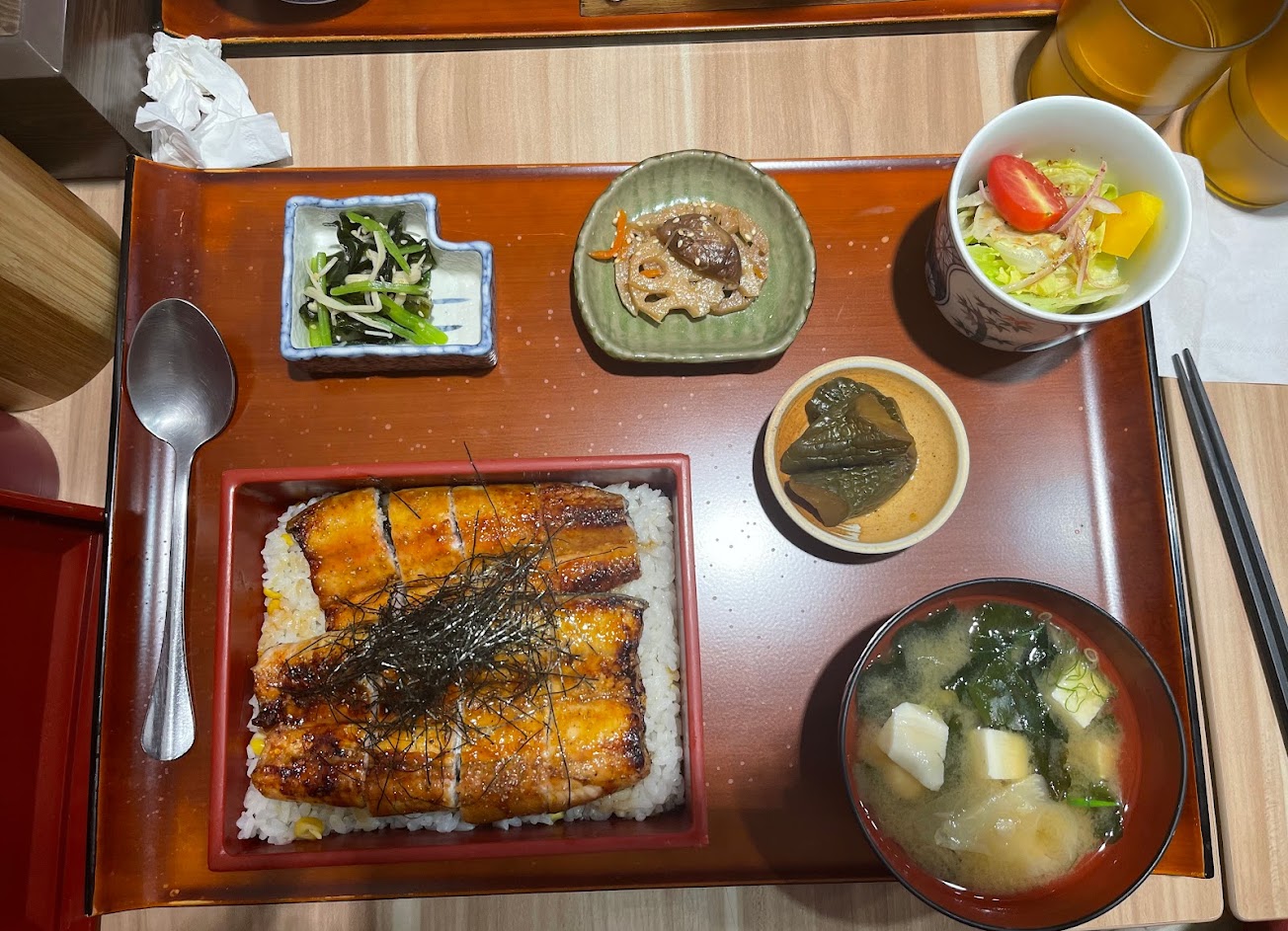 鰻魚是我很喜歡的餐點很多城市吃過以今天這裡的味道最適合我很好吃,其他地方都偏甜。其他餐點就一般般牛肉壽喜燒就偏鹹不好吃。停車空間走兩步路有一個收費停車場不過吃飯時間很容易滿位需等待。