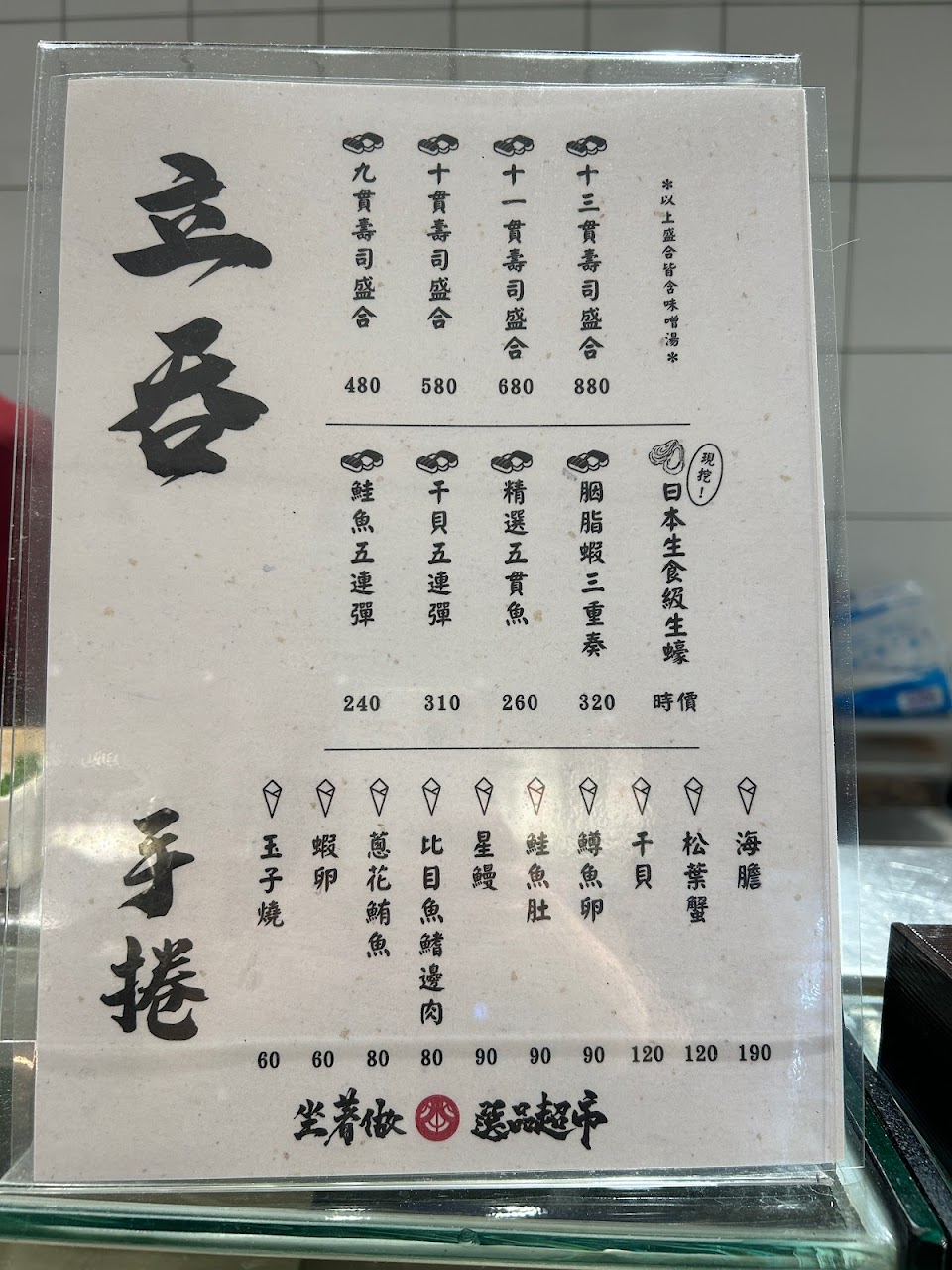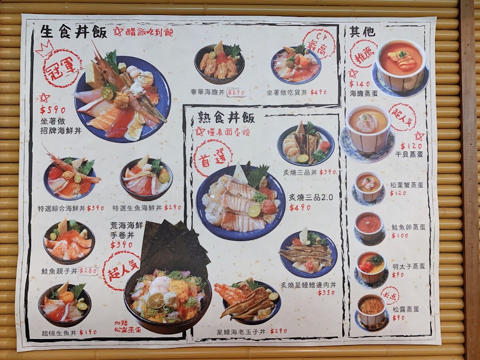 體系內新開的海鮮、肉品或即食品、酒品的選購小超市,現場無即食座位,但可現點後立吞或外帶。採購新鮮八斗子漁獲的好地方,雖然魚鮮選項不多,但現場買魚鮮後,年輕師傅會幫客人把魚三清(清鱗、清鰓、清肚)處理得很乾淨-是他們家體系餐廳等級的那種乾淨,不是一般魚市等級的三清-滿額後也可以要求現場真空包裝。幾次現場都遇到的大淵師傅-人挺熱情且健談,可以問他食材酒品的問題。 好店一枚,日後業績理應長紅。老闆可以考慮出來選里長了,小小一個里就開了這麼多間店,體系既可相互支援,而且各店軟硬質感兼具。坐著做體系挺有趣的。 服務 外帶 餐點類型 其他 餐點:4 服務:5 氣氛:4