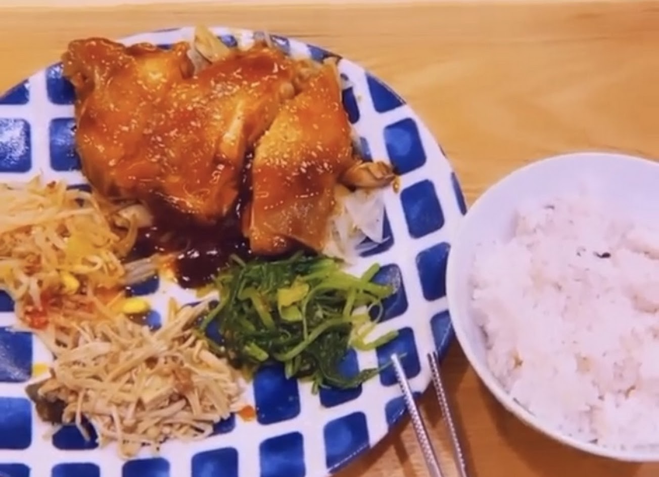 今天點韓式火烤豬餐(溫沙拉 五穀飯 優格)