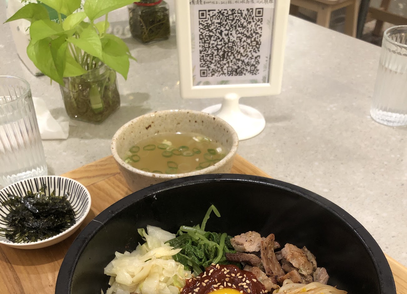 給四顆星是給充滿笑容的服務,環境簡單乾淨,點了韓式拌飯跟泡菜海鮮餅,兩者表現一般般。
