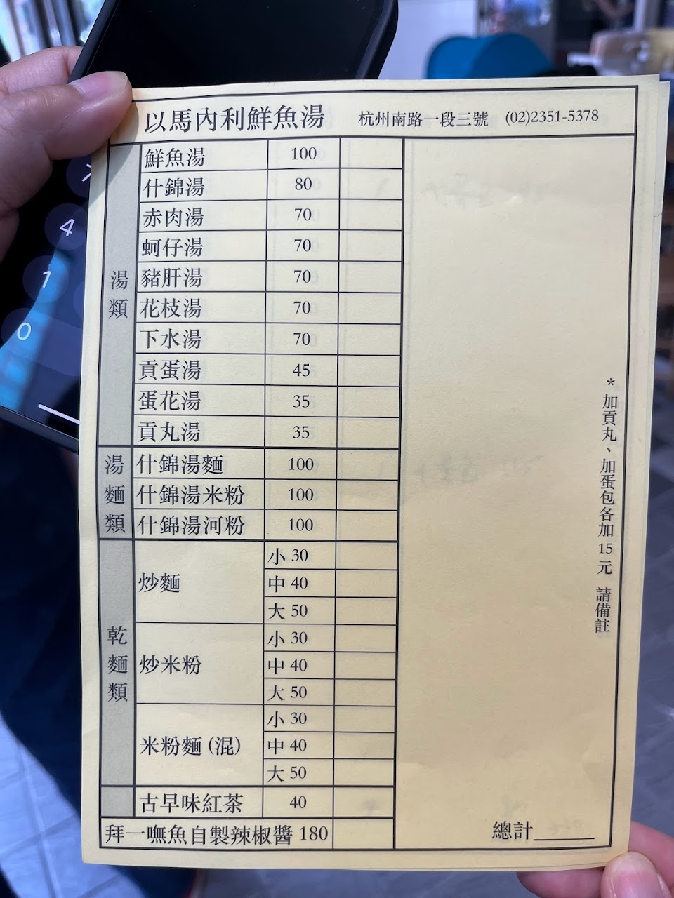 2024最新在地推薦餐廳的菜單_以馬內利鮮魚湯的菜單、圖片