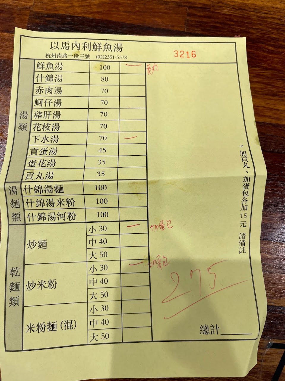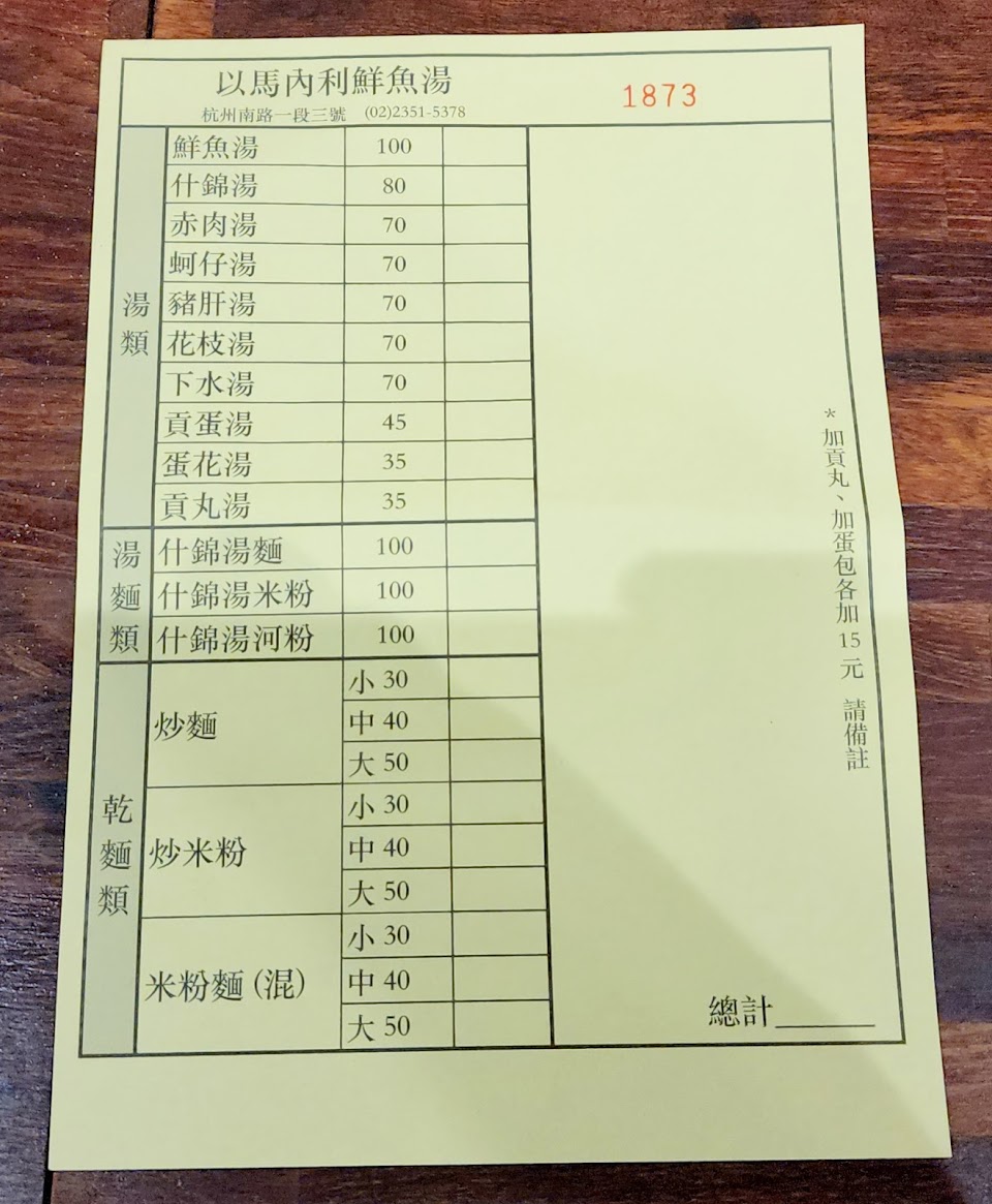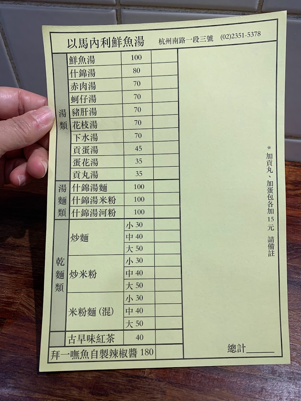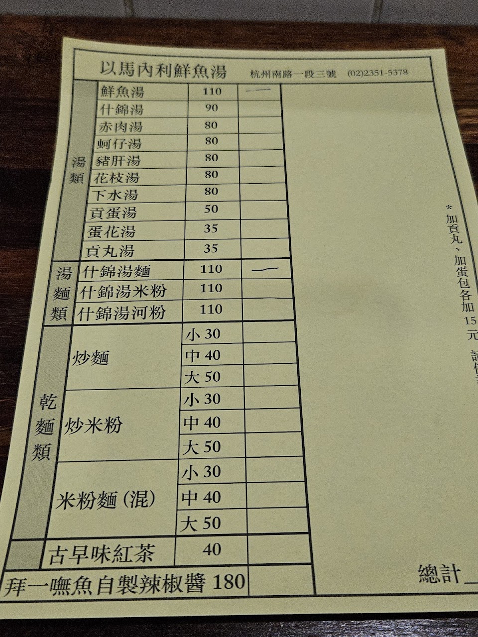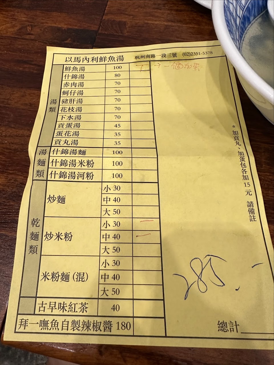 原來這意思是鮮魚湯加米粉或麵(100元)
