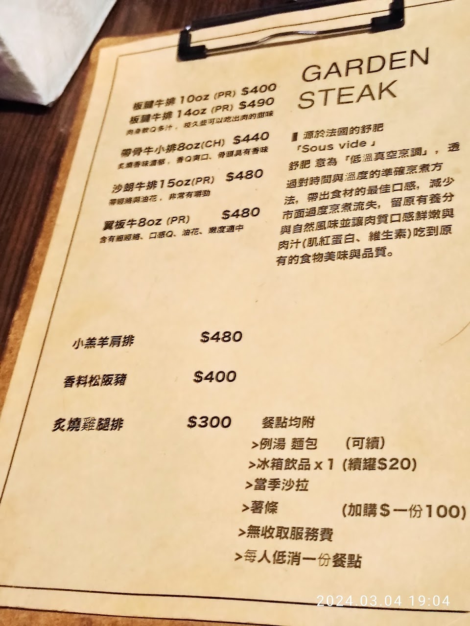 2024最新在地推薦餐廳的菜單_Garden Steak 花園牛排的菜單、圖片