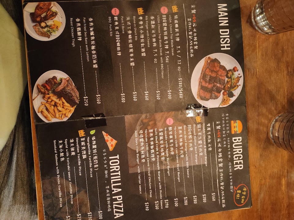造訪中餐,巴豆妖,初嚐,類美式餐館,點了肋眼牛排,跟爐魚排,餐點好好吃,顛覆了想法,有牛肉羅宋湯跟玉米濃湯,讓客人喝到爽,極推