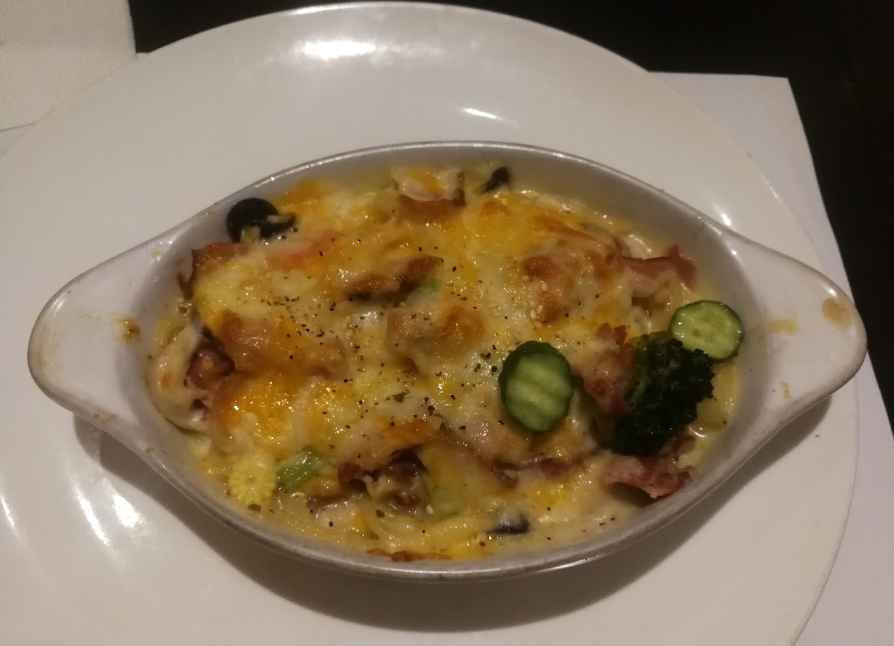 知道這間店開很久但一直沒有時間造訪,點了一份焗烤燉飯份量不會太多對女生來說剛剛好,氣氛不錯很適合約會