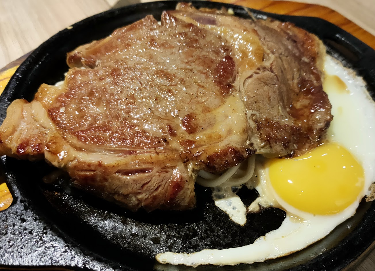 我點了紐約克五分熟,肉排明顯是醃漬過的,口感也不新鮮。排餐送來時完全不熱,也不會冒煙。熟度不對也就算了,在鐵板不燙的情況下,牛排五分熟竟然不會有血水滲出,感覺很不對勁。只能説很可惜,我不會再去光顧了,因為醃漬肉我很敏感。