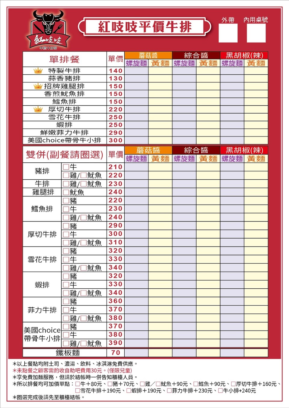 2024最新在地推薦餐廳的菜單_紅吱吱平價牛排館(新生店)的菜單、圖片