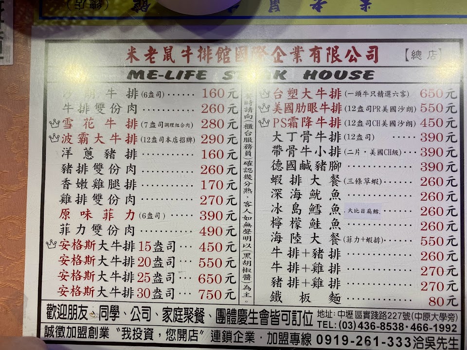 2024最新在地推薦餐廳的菜單_米老鼠牛排館國際企業有限公司的菜單、圖片