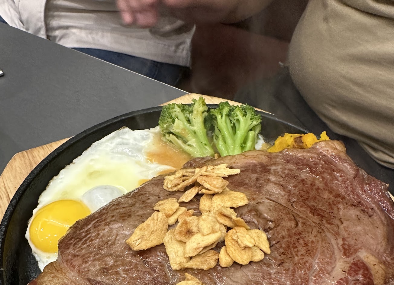 朋友的餐似乎送到別桌,服務人員途中有來確認餐點,可能人多有誤。鐵板過熱,朋友的7分牛排變全熟,蛋剛來就有燒焦味,可惜他是在地人。