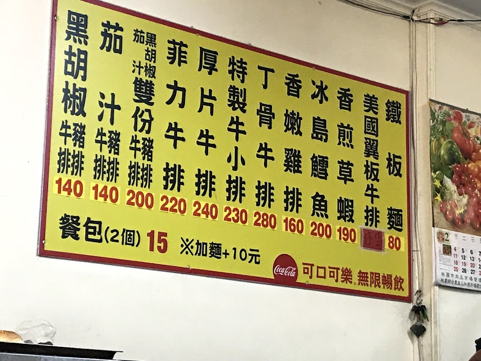 在社區裡的牛排館。排餐皆附一個餐包,玉米濃湯與飲料則是自己盛裝享用。如果點兩塊肉的排餐,鐵板麵會另外裝在一個鐵板上。選擇多樣,價格稍高,餐點好吃,環境明亮。