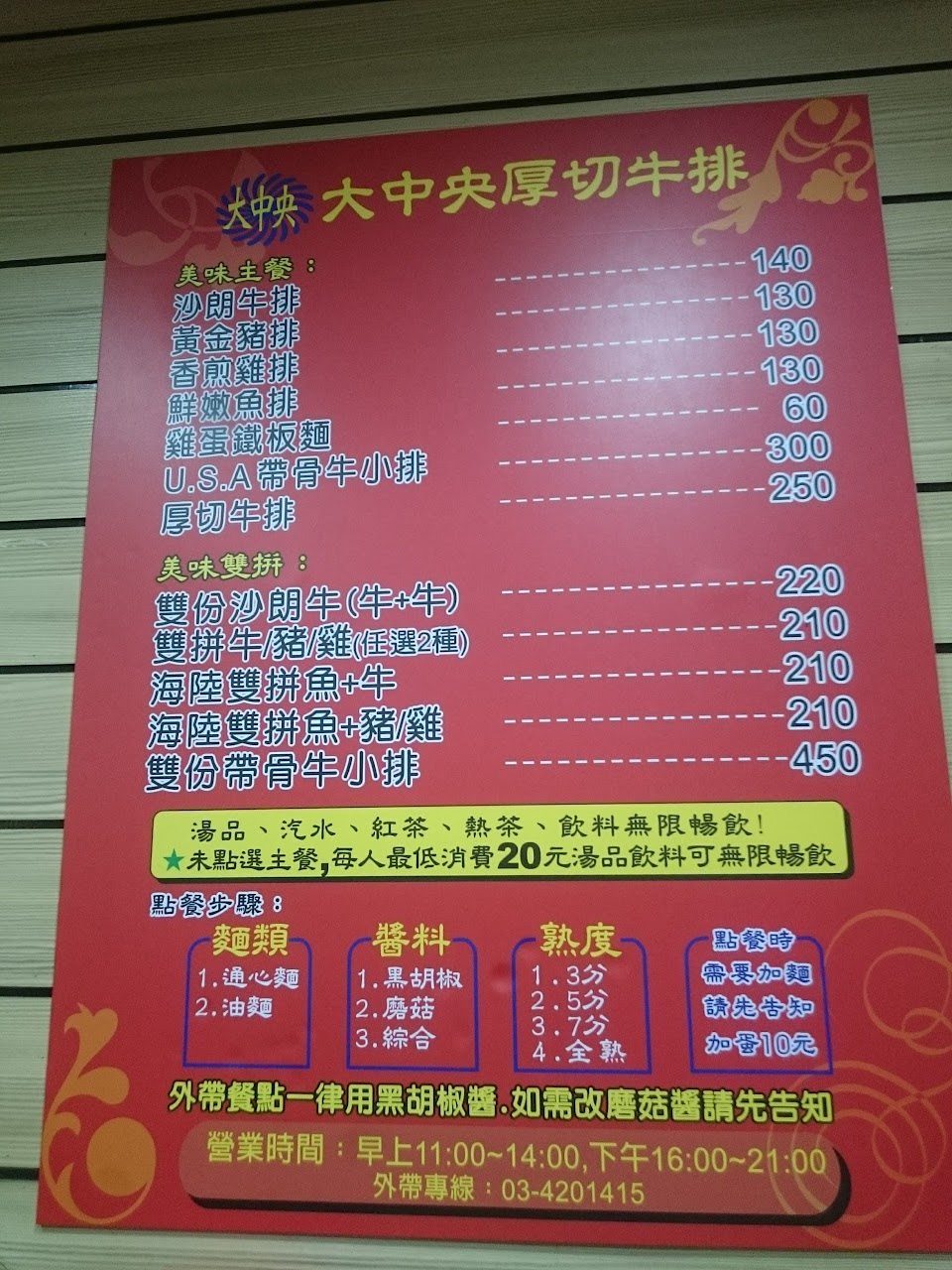 平價美味排餐,內用還可加麵,(並提供飲料,吐司+冰淇淋)自取。
