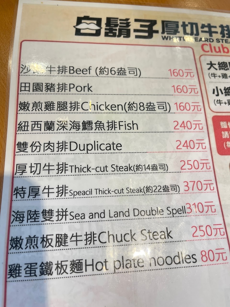 2024最新在地推薦餐廳的菜單_白鬍子牛排 內壢長春店的菜單、圖片