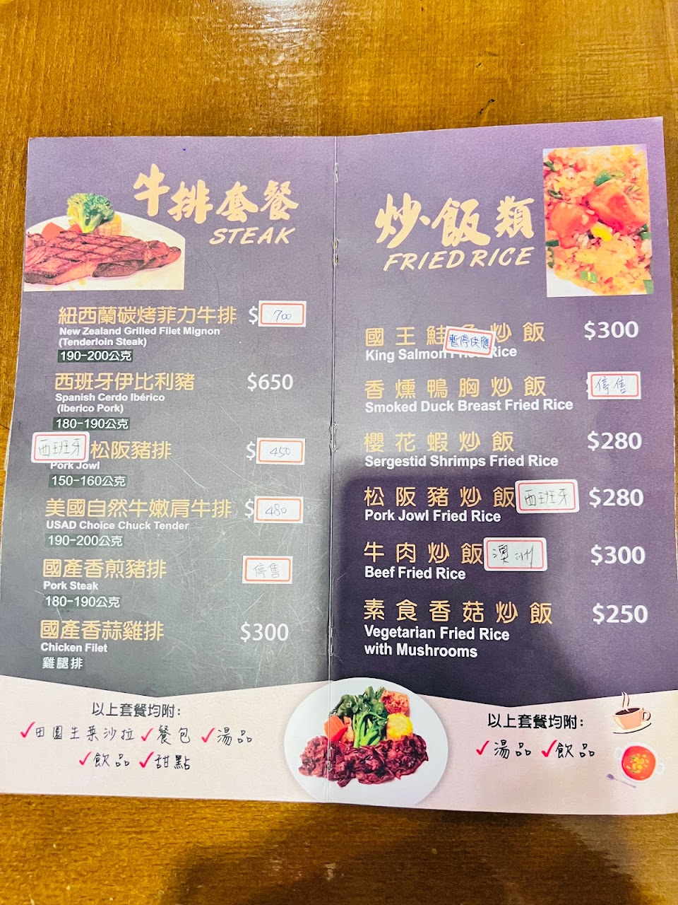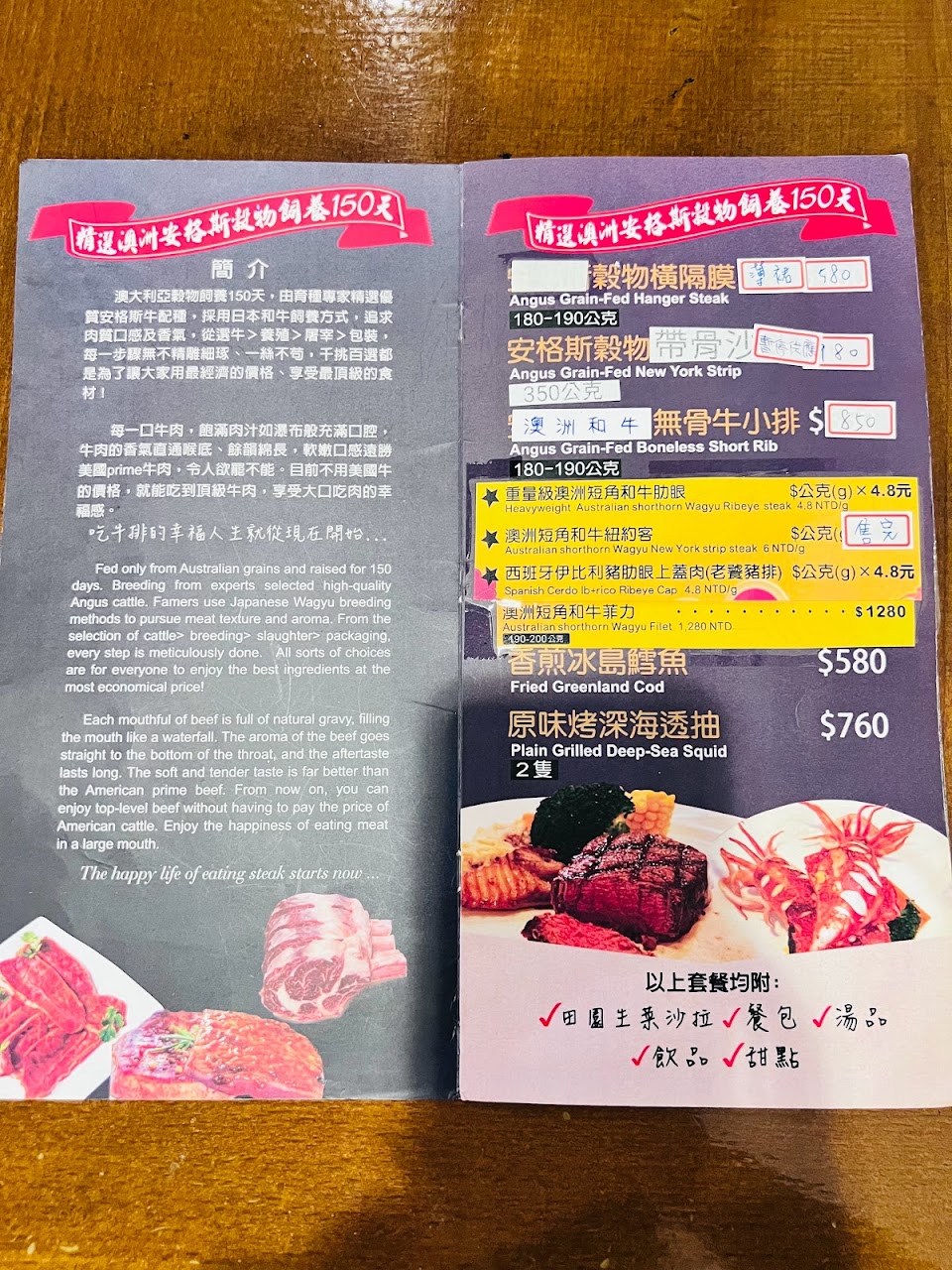 想吃真正的牛排,就一定要來這邊,跟外面所有加醬料的平價牛排都不一樣,不用沾醬,原味牛排加一點海鹽就超好吃的了!乍看菜單的價格會覺得比較高,但那是套餐的價格,不是單點,我們來吃過一次以後都覺得外面的牛排是在….哈囉嗎?