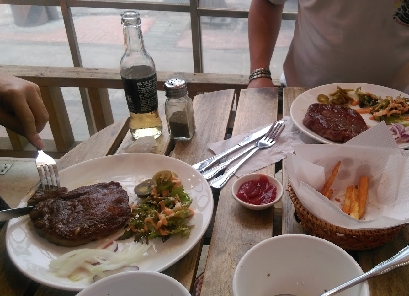 他們沒鐵板麵和濃湯,而是純粹的牛排,附的是玻璃瓶汽水,吃不習慣的要慎選。