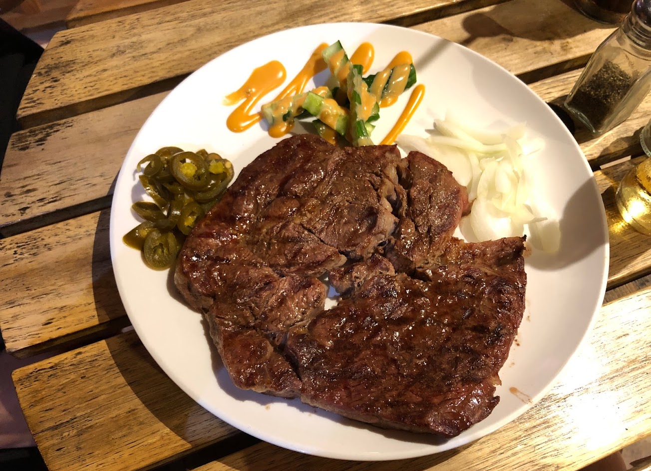 少給一星絕不是因為餐點不好吃,而是對於重視用餐環境或要氣氛的人,直接讓你們知道來這吃牛排不是吃氣氛的,這次點餐點的是老饕跟嫩肩12oz,老饕可以自選重量1g/元,再強調一次是美式牛排,所以不會有鐵板麵這東西!七分熟我覺得剛剛好,肉質夠嫩好咀嚼,灑點玫瑰鹽搭配洋蔥,好吃!