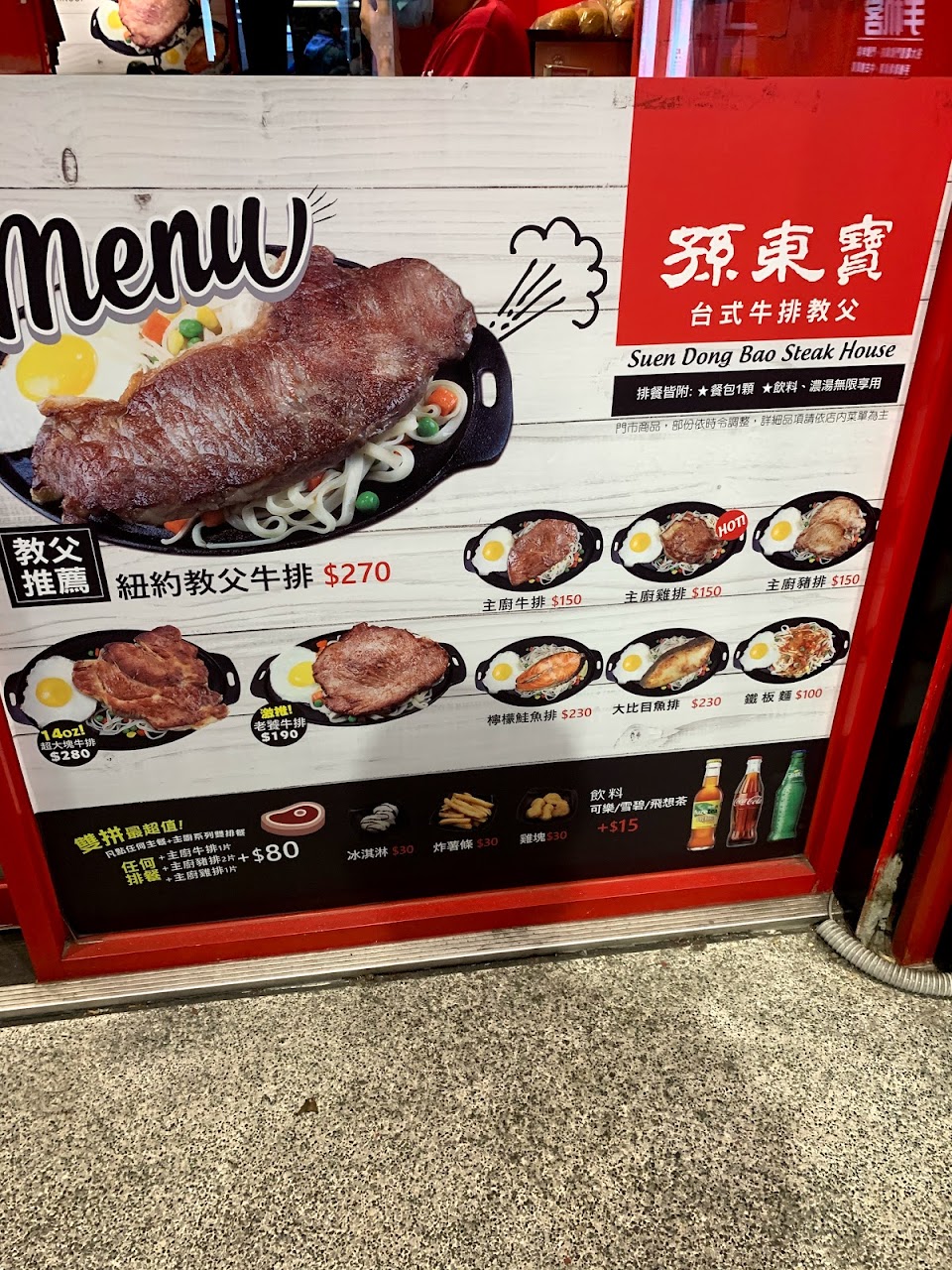 別間孫東寶雖然主食都不好吃但至少湯好喝,這間是全部都不好吃!!麵難吃,牛排難吃,湯也很難喝,只有飲料可以喝? …