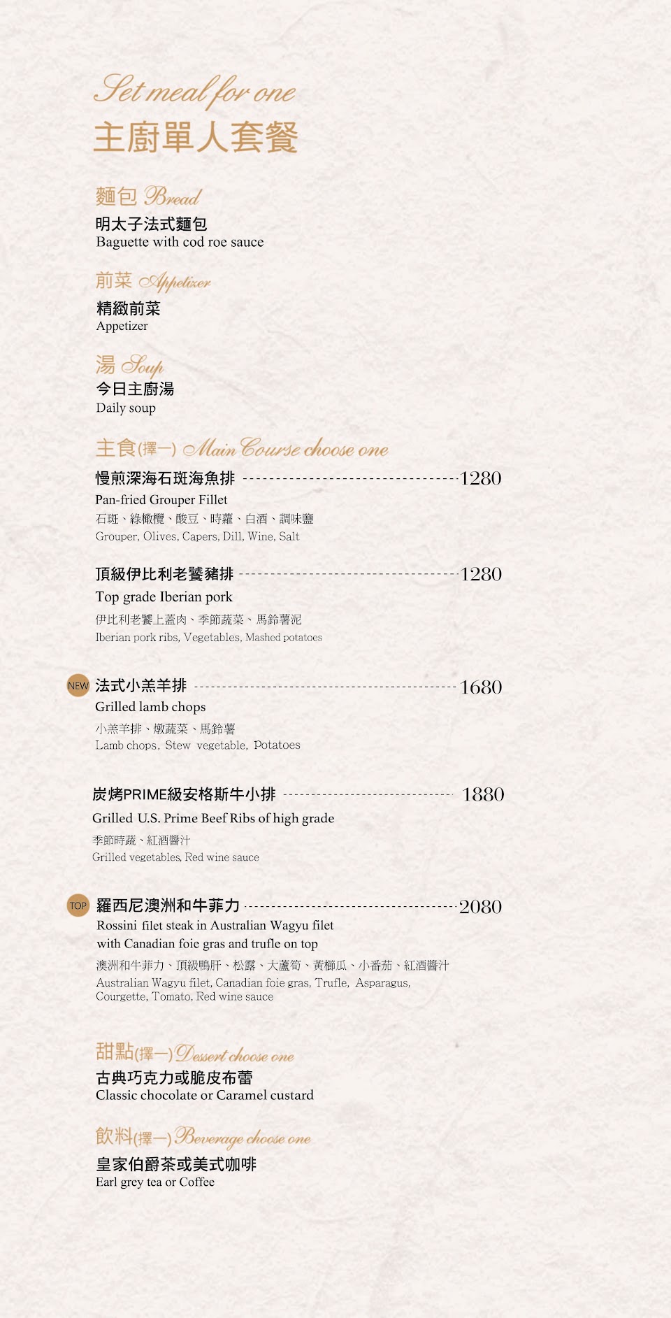 羊排和牛排都很嫩,餐後的布蕾非常好吃?