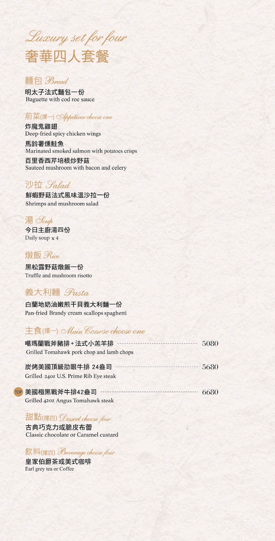 沒有五星好評送什麼 是真的不錯 貴店是會讓我想再訪的 就是稍微貴了一點 但食材用料非常棒 廚房還是公開透明的 唯一能挑惕的就是飯後給的牙線棒品質比較爛 建議可以用3M的 整體非常舒服 牛小排建議喜歡咀嚼的人再點 牙齒不好的可以考慮豬排就好 想吃肉質比較軟比較好咬的可以點菲力 只是菲力更貴 前菜有個煙燻鮭魚超好吃 極力推薦這家