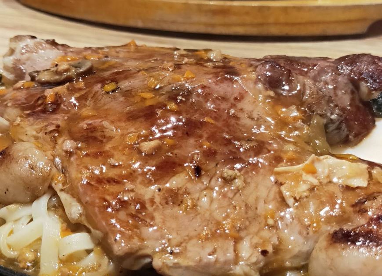 以平價牛排來說,他的肉質算很不錯了!在加上熟度掌握的頗到位(一般平價牛排8分=全熟,5分=8分),醬汁有 蘑菇 跟 黑胡椒+蘑菇(ps:沒看錯他家沒有純黑胡椒醬)…因為小弟吃牛排不配醬…所以這個 就Pass,鐵板麵就soso了!他門家用的是3厘米的寬麵,個人是覺得不太好吃(不入味,麵心偏硬….)…玉米濃湯 算可以(這種最難評,沒好吃到哪裡去,可是絕對不算難吃…就一般般…)!!!結論!!!中壢平價牛排首選!!!(僅推牛排,鐵板麵就看個人喜好)