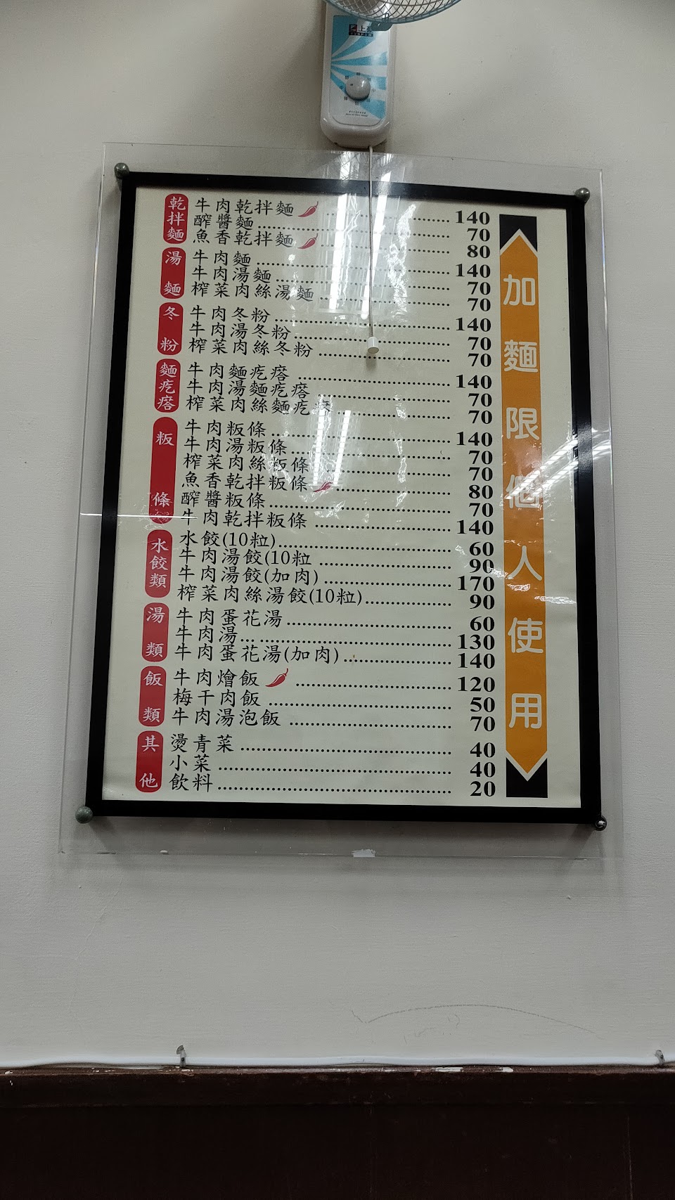 餐點除了招牌牛肉麵跟其他麵點外,尚有水餃,梅干飯?!