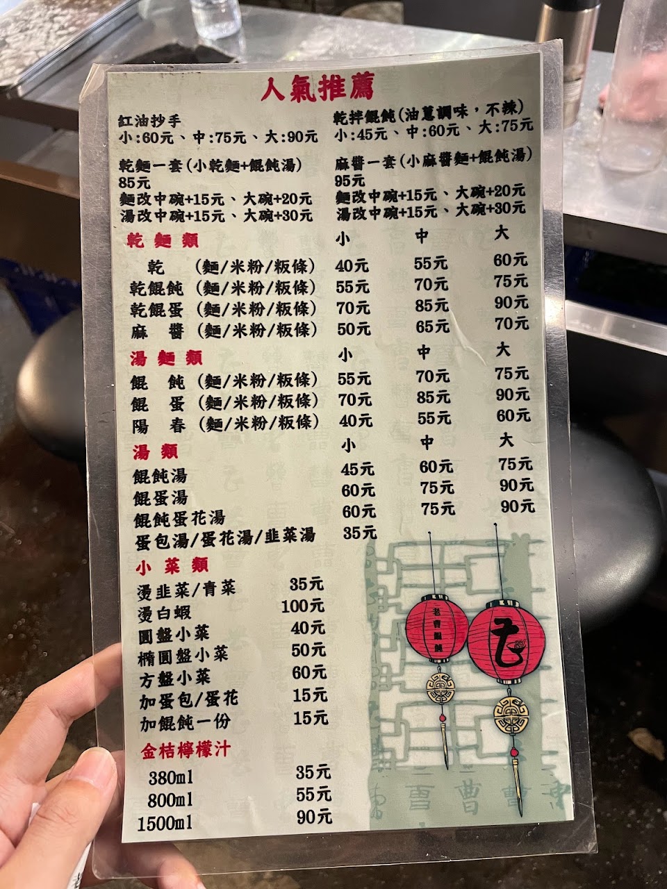 乾麵+餛飩湯是絕配必點,乾麵一定要加醋,攪拌均勻後很好吃,上菜速度還蠻快的,店內座位稍嫌擁擠。