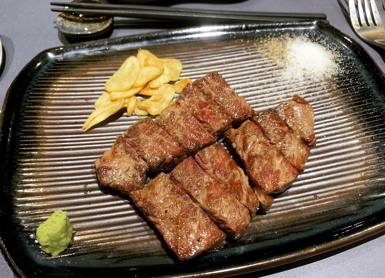 超推薦來這間店。完整的一個set吃下來大約一個半小時,價格也不貴。特別是一開始的烤麵包真的很特別,沒有想到烤麵包可以有這樣的口感,滿滿的奶油香氣。之後吃到的干貝也是很鮮甜,同桌夥伴一口咬下去,帶著更多不同的層次感,聽他描述也很強。主餐的牛排就沒到那麼特別,但也是水準之上。同桌有加點明蝦跟龍蝦,味道也很新鮮,特別是龍蝦還是現撈出來給我們看過才去做烹調。不過這次因為不喜歡油煙坐在座位區,對於服務生真的有點失望,服務並不是這麼熱情(沒收10%就不計較)但在烤盤區的廚師,還會跟人家介紹特色及菜色,我們就真的只能豎起耳朵聽而已……這真的是本日用餐覺得小小的遺憾。