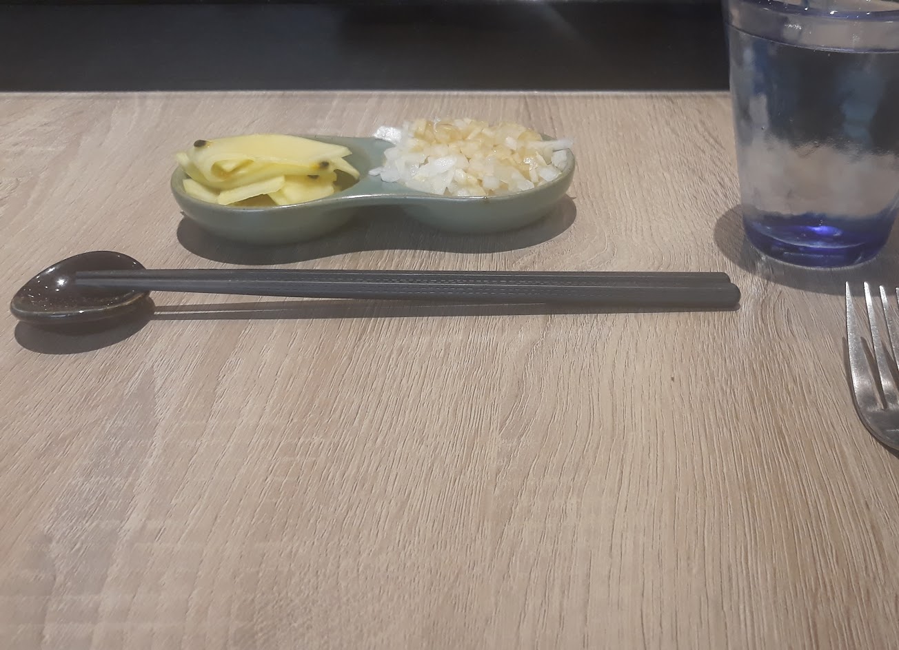 一道還沒吃完,另一道被硬上,全程一直在趕時間……無法有享受、慢慢品嚐的心情,客人還在就已經在打掃,椅子、杯盤移動碰撞聲,莫名有種無形壓力……