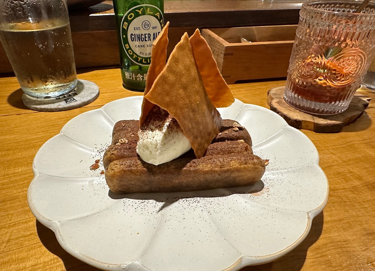 餐點看起來精緻小巧,不過吃到最後真的超級飽!開胃菜和溫沙拉的醬汁很喜歡,桂丁雞口感很Q彈,主食的墨魚燉飯也很香,口感也是比較粒的,主菜的鴨胸超厚切,跟櫻桃陳年醋超級搭!不過另一份主餐的牛小排 ,外皮因為比較焦導致吃起來有苦味,只能切除再吃。最後的提拉米蘇是有酒的!很好吃!