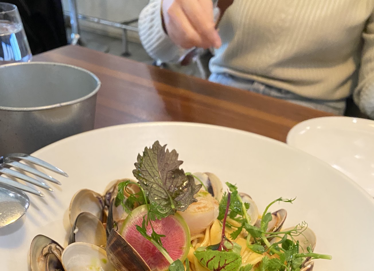 海鮮寬面非常好吃,海鮮分量非常震撼,蛤蜊和干貝都好大,也非常新鮮,麵感覺是自己手工製作的,也非常特別好吃,吃的時候有種在意大利旅遊的感覺。服務員都非常熱心,戴眼鏡的女服務員在我告知她我的一些食物過敏後,上套餐餐點都會特別提點我什麼是我能吃和不能吃的,非常認真細心,一定會再來光顧。