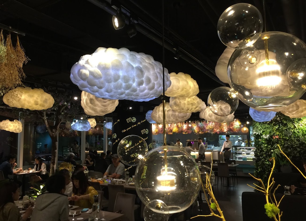 不過店內很適合女生來拍照,沙發區還有 MC 造型的抱枕,天花板懸掛雲朵造型的燈,在夜晚的時候看起來頗夢幻。