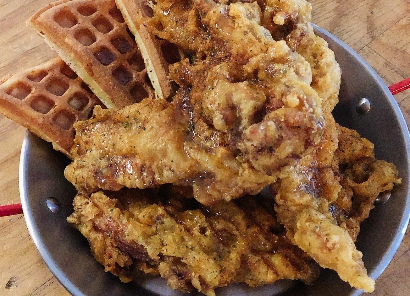鬆餅炸雞是經典餐點。