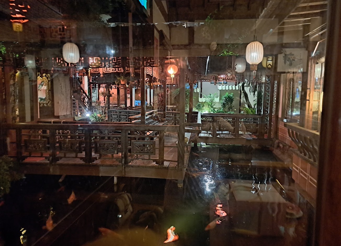 古色古香的建築,裏面有很多錦鯉可以觀賞。人數多的話,也有包廂式。
