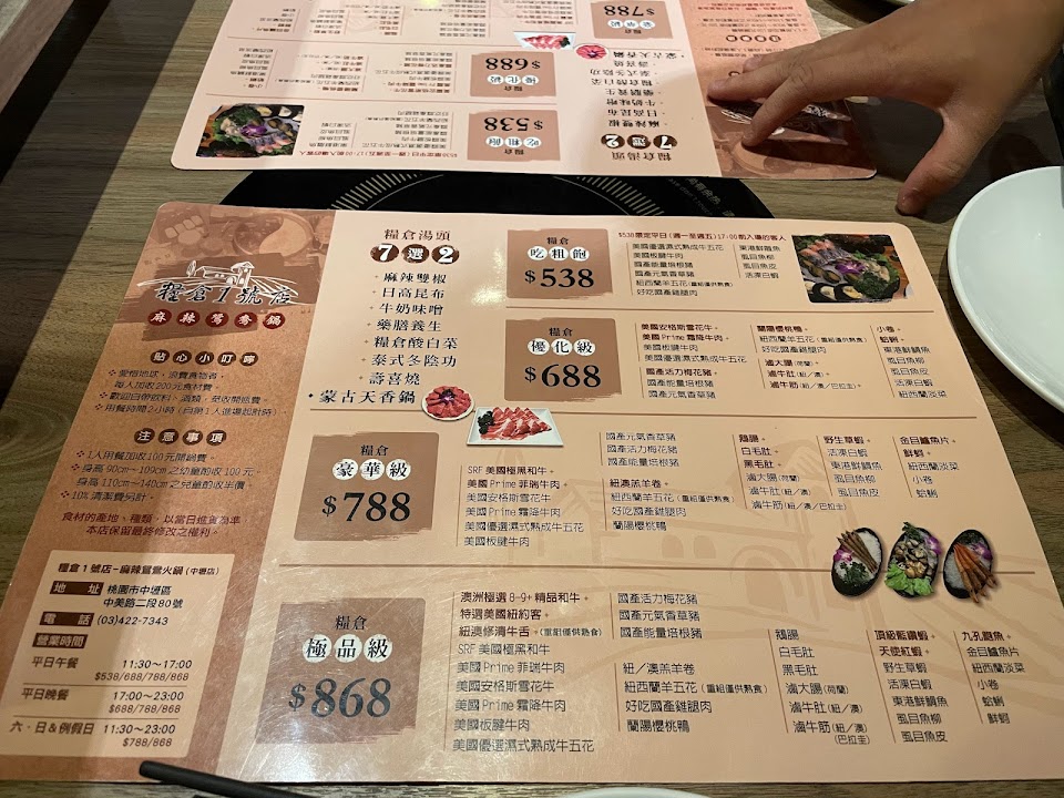 2024最新在地推薦餐廳的菜單_糧倉1號店頂級麻辣鴛鴦鍋-中壢店的菜單、圖片