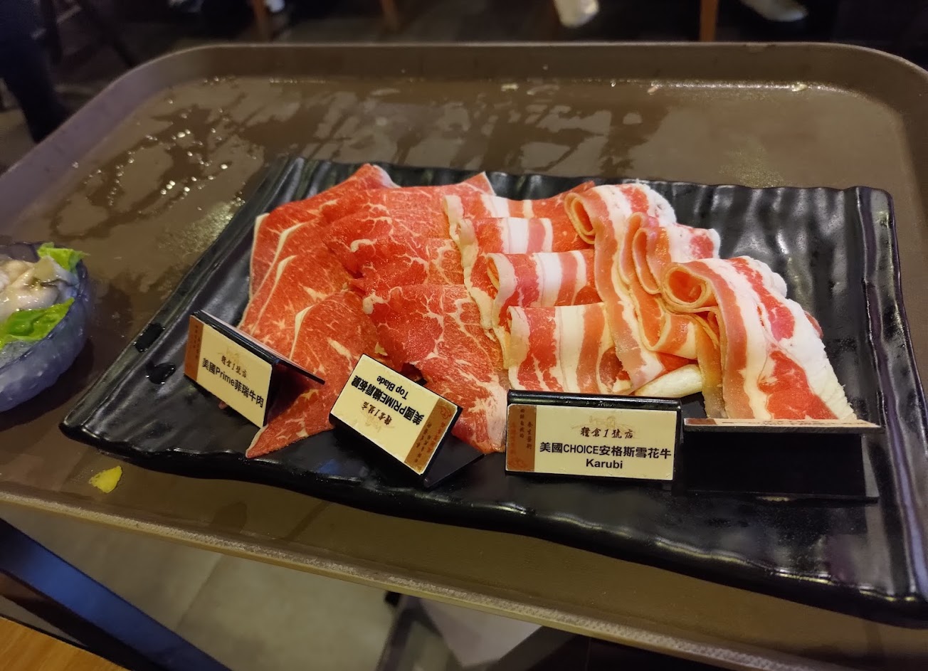 這次用餐選擇最貴的868,6人1鍋2湯底,麻辣鍋麻味十足、澳洲和牛一般水準、牛舌有待加強、豬肉可惜沒有松阪豬、各類蝦子的新鮮度相當不錯。