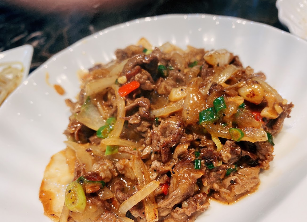 蒜香牛肉份量還算不錯 炒三鮮主菜則偏少了一點