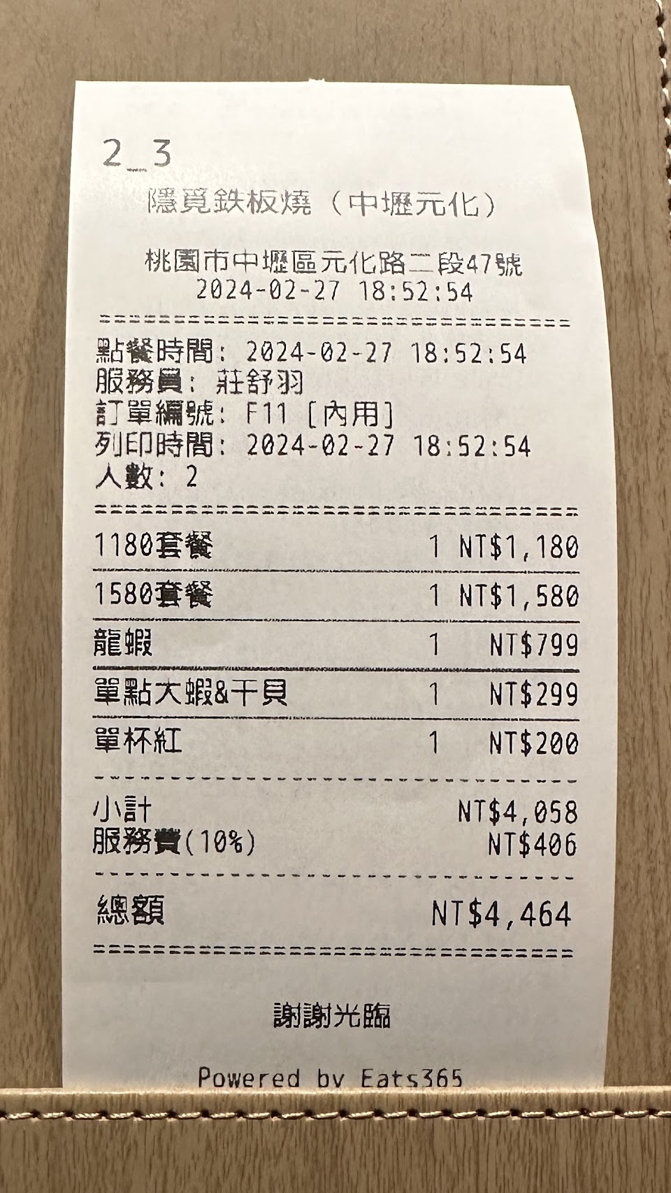 訂位要等一個月,值得。吃很飽